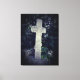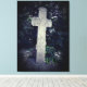 Photographie de croix de pierre ancienne sur une toile imprimée.