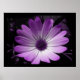 Cette étonnante impression florale présente une photo magnifiquement détaillée d'une fleur marguerite africaine. La photo a été numériquement modifiée, ce qui donne une jolie fleur de couleur violet avec différentes nuances de violet sur les pétales et un centre violet foncé. L'impression a une bordure noire.