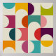 Cette impression géométrique a des formes simples en demi-cercle coordonnées en bleu turquoise, jaune soleil, violet foncé, vert citron, framboise, orange, rose et crème. Le design abstrait a un look moderne cool. Cette affiche est en coordination avec d'autres objets de la collection Palm Springs de Delfuneum.
