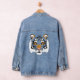 Superbe veste en denim avec illustration graphique d'un majestueux visage de Tigre.