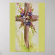 Peinture aquarelle représentant une croix décorée pour célébrer Pâques. Il est ressuscité. Carte de vœux, carte de Pâques, marque-pages et plus.