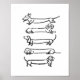 Capturez votre amour pour la race de chien weiner et toutes leurs personnalités hilarantes avec cette drôle d'impression d'art de dachshund. Cette illustration moderne en dachshund noir et blanc est conçue pour s'adapter parfaitement à n'importe quel décor moderne minimaliste de maison, faire un ajout unique à un mur de galerie de chien, ou servir de cadeau parfait pour l'amant de dachshund dans votre vie.
