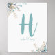 Une belle affiche de pépinière de garçon personnalisée avec le nom initial et le prénom de votre bébé garçon dans une jolie couronne.