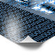 Affiche de cryptage numérique avec coffre-fort bancaire et code binaire chiffré.