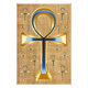 Le symbole égyptien Ankh ou Key Of Life dans les tons or et bleu. L'Ankh au centre du design est complété par des symboles Ankh plus petits autour sur un design arrière - plan papyrus.