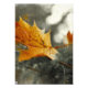 Feuille d'érable orange dans la forêt automnale, effet colorkey.