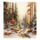 Un mélange aquarelle de 2 cabines de style rustique dans les bois en automne.