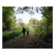 Grand-père et grand-fils randonnent le sentier Ridge à Clear Creek Metro Park pendant que les champs s'animent avec la lumière de l'heure d'or. Sumac, verge d'or et arbres d'automne bronzés brillent tandis que les silhouettes des randonneurs avec bâtons se détachent sur le chemin.