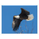 Un bel aigle chauve femelle en vol contre un ciel bleu vif.