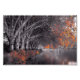 In the stillness of this black and white masterpiece, a timeless scene unfolds. Majestic trees reach towards the heavens, their gnarled branches intertwining like whispered secrets. Reflected upon a glassy lake, the world above and below merge in perfect harmony.