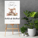 Ce panneau d'accueil du week-end de la fête de Bachelorette avec un thème éblouissant dégage un air de romantisme et d'aventure, invitant les clients à une escapade mémorable en plein air. Le design est à la fois élégant et fantaisiste, avec une attention particulière aux détails. Le point central de l'invitation est un lit rose doux et joliment illustré qui occupe le centre de la scène. Ce lit est décoré avec soin, avec un auvent drapé et des fleurs délicates peintes à la main dans différentes teintes de rose, créant une atmosphère rêveuse et enchanteresse. La canopée semble s'amonceler doucement dans le vent, ajoutant un sentiment de mouvement et de romantisme à la scène. Au-dessus du lit, quelques lanternes flottantes roses et dorées apportent une touche magique. Ces lanternes semblent flotter dans l'air, jetant une lumière chaude et invitante et symbolisant la lumière guide de l'amitié et de l'aventure. Elles créent une ambiance éthérée et fantaisiste, parfaite pour une expérience glamour sous les étoiles.