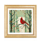 White Snowy Winter Forest et Cardinal red bird - cadeau moderne et capricieux Klimt style maison pour les amoureux de la nature. Grand mur de Noël Art nouveau style Klimt.