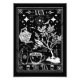 Grunge carte tarot design pour les amateurs de thé! Le Thé. Illustration blanche et noire avec une théière qui verse de l'eau dans une tasse de thé, un buisson de thé et un squelette.