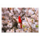 Oiseau rouge vif du Cardinal du Nord avec fleurs d'arbres roses dans l'arrière - plan.