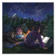 Starry Night art de Traci Van Wagoner imprimer, affiches, accessoires et cadeaux présente notre peinture originale de deux enfants et leur grand chien noir campant sous les étoiles en lisant un livre fantastique autour d'un feu de camp sur des chevaliers et des dragons. La magie de l'histoire tournoie dans le ciel étoilé pour montrer un chevalier et un dragon dans une éternelle danse nocturne des étoiles. Profitez d'un camp d'été en montagne.