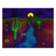Dessin d'une scène de dessert paisible avec une tortue, un serpent et un phacochère qui boit dans un ruisseau. Un coyote hurle sur la lune au loin.