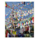 Drapeaux de prière colorés du Bouddhiste tibétain Lung Ta (Vent Horse) accrochés près du temple principal de Sa Sainteté le 14ème Dalaï Lama à McleodGanj Dharamsala Inde. Les drapeaux de prières sont suspendus le plus haut possible afin que les prières qu'ils contiennent se dispersent sur de longues distances.