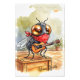 Set against soft outdoor washes of olive green and pale blue, the composition creates a rustic, storybook atmosphere filled with personality and playful rebellion. Perfect for music lovers, guitar enthusiasts, and anyone who appreciates quirky, imaginative art.