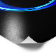 Luminous infinity symbol with glowing, beautiful, lushly blooming rose made of blue flames on black background.
