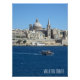 Affiche de Malte. Un bateau de pêche traditionnel Luzzu traverse le port, avec la capitale La Valette dans l'arrière - plan Image ©copyright Jo Rymell