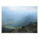 Vue du sommet du mont Snowdon, la plus haute montagne du Pays de Galles. Avec des vues lointaines sur les collines, les rochers et les oiseaux au premier plan.