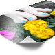 "Model A" pose ses pieds sur de belles fleurs jaunes en pot pour faire une photo intrigante