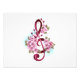 Pink treble clef with delicate, detailed pink Japanese cherry blossoms against white background painted over with light blue paint Blooming pink sakura.