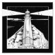 Illustration en noir et blanc de la barrière de rochers et de son phare, à Nelson en Nouvelle-Zélande.