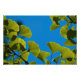 Des feuilles de Ginkgo rétroéclairés contre un ciel bleu.
