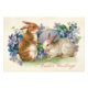 Ce printemps envoie un message de Pâques à quelqu'un ! Cette impression vintage représente un lapin de Pâques, des oeufs de Pâques colorés et un violet Forget-Me-Not.