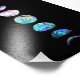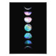 A moon cycle graphic done in pretty opaline hues of pink, turquoise, purple, green, and blue.