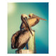 Deux pélicans, probablement encore endormis, posent à l'aube, perchés sur les quais. Idéal pour les amoureux de la nature, des animaux, de la faune. Customise comme tu veux.