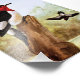 Un pic à tête rouge vif et audacieux perche sur une branche de cette illustration vintage d'oiseau. Le pic a une tête rouge glorieusement brillante qui contraste avec ses plumes noires et blanches sur son corps. L'art vintage parfait pour les amateurs d'oiseaux.