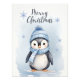 Une charmante illustration hivernale d'un adorable petit manchot portant un casquette rayé bleu et une écharpe, apportant une ambiance cosy et festive. Les flocons de neige doux et les tons bleus doux de l'arrière - plan créent une atmosphère hivernale magique. Parfait pour les cartes de Noël, les affiches, les autocollants et l'artisanat saisonnier !
