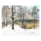 Artiste de Zolotareva. aquarelle sur soie - dessin manuel; pont de pierre à travers la rivière dans le village.Vue d'un pont enneigé dans les bois.