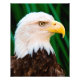 Les plumes blanches d'un aigle à tête blanche contrastent avec un arrière - plan vert. Son bec crocheté est pointu et pointu. Ses yeux se concentrent sur quelque chose au loin.