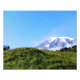 Une vue sur le Mont Rainier et les collines verdoyantes environnantes pendant une journée ensoleillée de printemps.