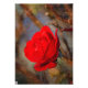 Rose rouge sur arrière - plan coloré dans le jardin automnal, effet de peinture
