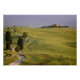 Photographie de la route de gravier blanc (ou strada bianca) à Terrapille agriturismo avec cyprès à côté dans la lumière du soir dans la Valdorcia (Vallée d'Orcia) près de Pienza en Toscane, Italie. La route s'appelle aussi Gladiator Road parce que le film The Gladiator a été en partie enregistré ici.