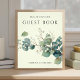 An elegant sage green eucalyptus wedding guest book tabletop sign featuring boho watercolor greenery and corner botanical designs.