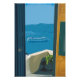 numériquement modifié la photo d'un bateau de croisière dans la caldera, prise par une porte à Thira sur l'île de Santorin, Grèce