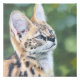Ce visage adorable appartient à un chaton serval. Cette conception a été dessinée avec des pastels à poêle et des crayons colorés.