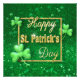 Illustration glamour de la Saint-Patrick à la parties scintillant dorée élégante avec typographie en or 3d à l'intérieur d'une bordure en parties scintillant dorée avec un élégant trèfle shamrock sur un précieux arrière - plan vert.