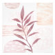 An abstract watercolor featuring patterned shapes and a botanical in a palette of maroon and soft calming colors.