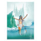 rendu numérique 3D d'une mignonne sirène dans un océan sur un arrière - plan de château magique