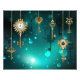 Or, clés antiques avec engrenages et cadrans accrochés sur chaînes dorées sur arrière - plan vert lumineux.