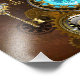 Turquoise lenses with antique watch with brass gears and golden keys on rusty, brown background. Steampunk style.