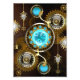 Turquoise lenses with antique watch with brass gears and golden keys on rusty, brown background. Steampunk style.