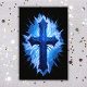 Impression Photo Superbe Croix Bleue Chrétienne sur noir |