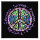Un symbole de paix avec les mots harmonie, équilibre, unité, unité et plus et aussi un arbre de vie. Oeuvre d'Amelia Carrie